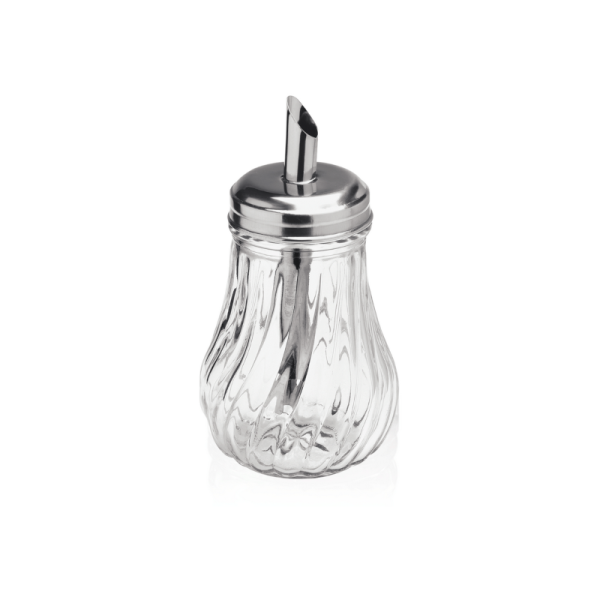 Skleněná cukřenka s dávkovacím víčkem je praktickým řešením pro kavárny, cukrárny i hotelové snídaňové bufety. Díky nerezovému víčku s úzkým hrdlem zajišťuje pohodlné dávkování cukru – ideální při rychlém provozu u stolů nebo k samoobslužnému servisu. Objem 210 ml je optimální pro denní provoz, bez nutnosti častého doplňování. Lehce vroubkované skleněné tělo je na pohled pěkným doplňkem na stole. Cukřenky lze snadno doplňovat a čistit, ať už při běžném provozu nebo večerním úklidu.