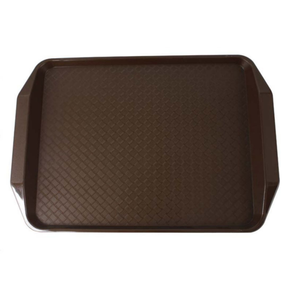 Jídelní podnos a rukojeťmi v hnědém provedení se hodí do všech typů jídelen, jako například rychlá občerstvení, školy a školky. Díky zdrsněné povrchové úpravě pomáhá podnos strávníkům v tom, aby jim nesené jídlo neklouzalo a lépe se jim tak s plným podnosem manipulovalo. Vhodný do myček na nádobí do teploty max. 80 °C.