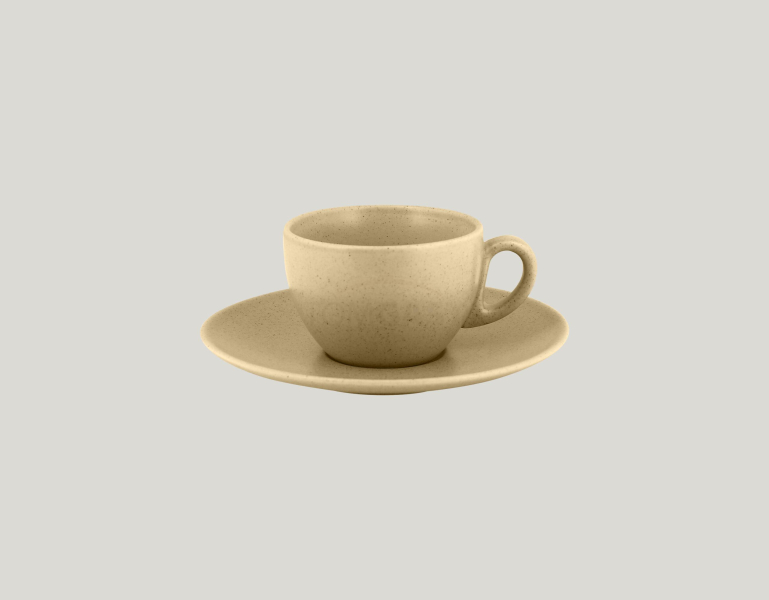 Genesis podšálek kulatý o průměru 17 cm doplňuje šálek na kávu (RAK-GN116C23AL) ve stejném mandlovém odstínu.