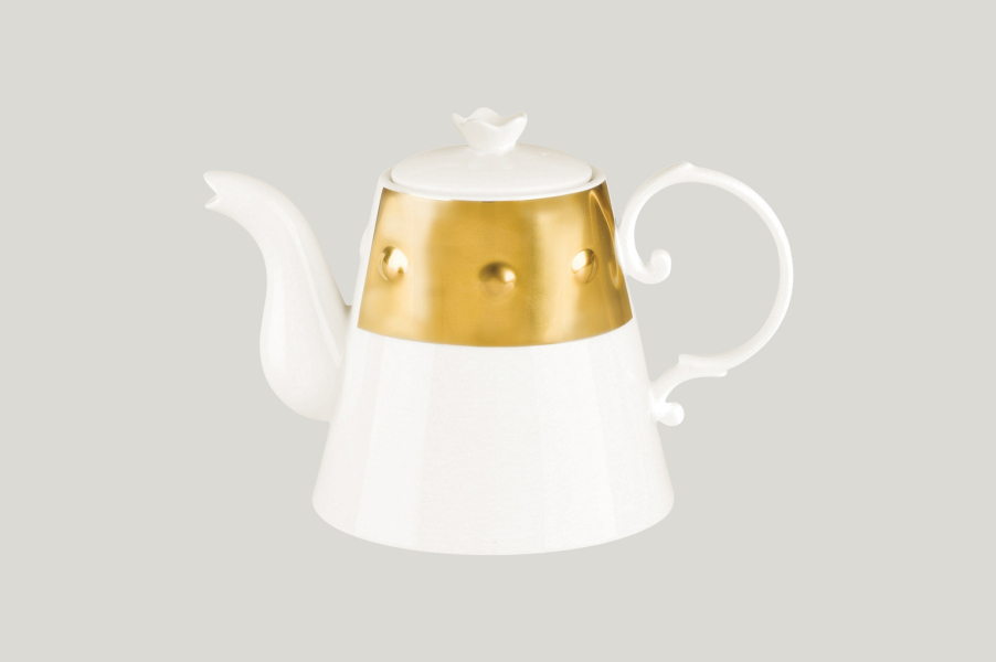 Dodejte svým stolům vůni královského luxusu. Konvice na čaj s víčkem z kolekce Golden naservíruje vašim hostům pořádnou porci císařské krásy, bohatství a šmrncu. Svým pozlaceným leskem ohromí, zaujme a přinese starodávnou atmosféru z prvotřídních řad společnosti. Přesně jako když si královna dává „čaj o 5“.