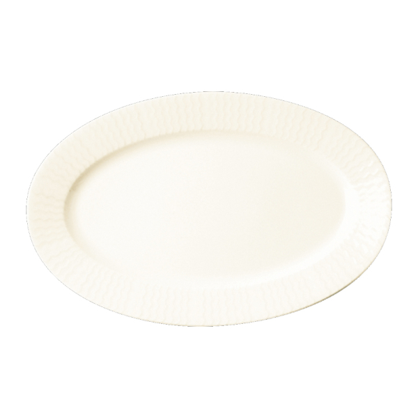 Mělký talíř oválný zdobený reliéfní vlnkou vyzařuje moderní šmrnc, který okouzlí a podhrne podávaný pokrm. Kvalitní porcelán se postará o odolnost a dlouhodobou výdrž i při intenzivním používání. Hodí se pro servírování jednohubek či jiných předkrmů i pokrmů.