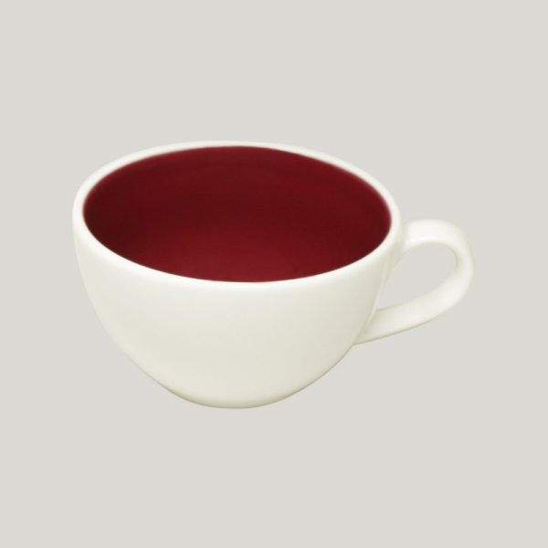 Nestohovatelný šálek kombinuje vínově červenou barvu s bílým odstínem slonové kosti, což mu dodává na elegantnosti a oživuje tak atmosféru při stolování. Kvalita zpracovaného porcelánu zaručuje dlouhodobou životnost a odolnost i při intenzivním používání.