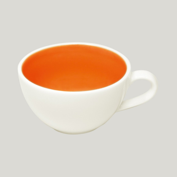 Nestohovatelný šálek kombinuje veselou oranžovou barvu s bílým odstínem slonové kosti, což mu dodává na elegantnosti a oživuje tak atmosféru při stolování. Kvalita zpracovaného porcelánu zaručuje dlouhodobou životnost a odolnost i při intenzivním používání.