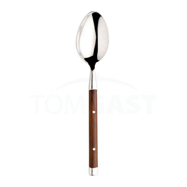 Jídelní lžíce z kolekce Rustic je elegantní příbor, který si najde místo v podhorských hotelech nebo country restauracích. Její rukojeť zdobí prvotřídní plast, který svým designem připomíná masivní dřevo, ale zároveň využívá všech výhod plastu. Na výrobu vidličky se používá také nerezová ocel 18/0. Ta garantuje vysokou odolnost proti korozi a zároveň slibuje dlouholetou výdrž i při každodenním používání.