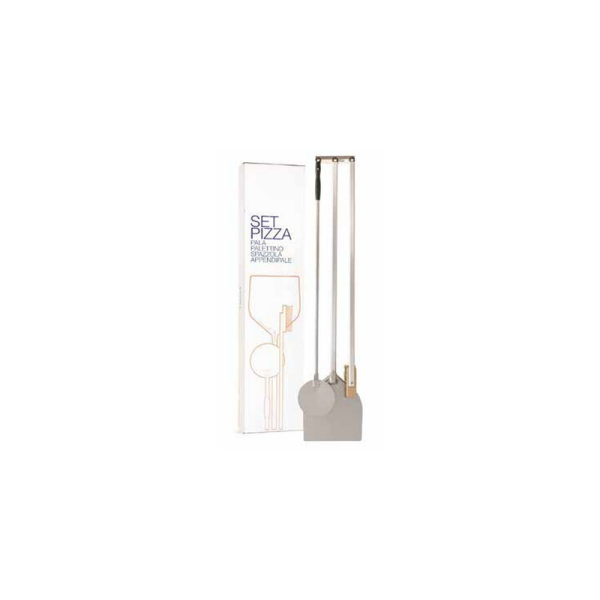 Lopaty na pizzu a kartáč s mosaznými štětinami disponují rukojetí o délce 120 cm. To garantuje snadnou manipulaci s pizzou i následné čištění pece či trouby. Zároveň se snižuje riziko popálení. Lopaty se vyrábí z oceli s hliníkovou povrchovou úpravou, která skvěle odolává korozi a jednoduše se čistí a udržuje. Velká lopata s rukojetí z neošetřeného hliníku a malá lopata je vybavena rukojetí s pozinkovaného hliníku. Celý set umístíte na věšák, který také naleznete v balení.