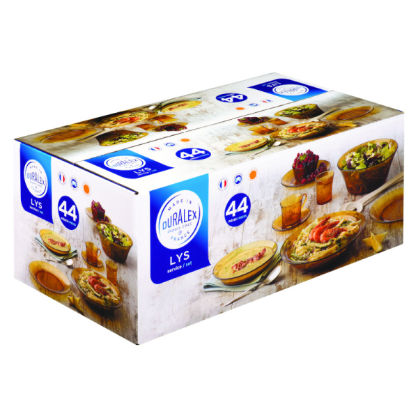 Tento skvělý set obsahující 44 skleněných kousků zajistí kompletní jídelní sadu nádobí. Svým propracovaným designem ve žlutém provedení servíruje eleganci na jídelní stoly. Temperované tvrzené sklo poskytuje odolnost vůči nárazům i náhlým teplotním šokům. Nádobí lze mýt v myčkách, ohřívat v mikrovlnce i chladit v mrazničce.
