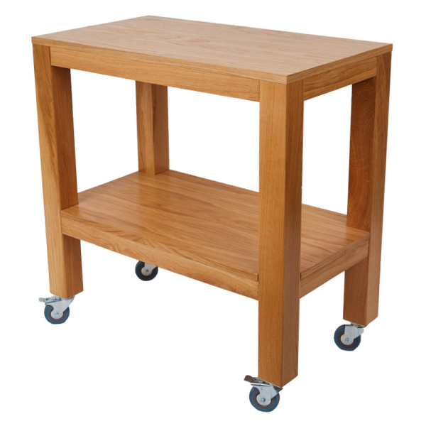 Servírovací vozík skvěle usnadňuje práci číšníkům při obsluze zákazníků. Vyrábí se z dubového dřeva a je vybavený čtyřmi otočnými kolečky pro snadnou manipulaci a dvěma brzdami pro větší bezpečnost. Lakovaná dubová dýha poskytuje výjimečnou odolnost vůči všem škodlivým vnějším faktorům a zároveň zajišťuje rychlé a snadné čištění vozíku.