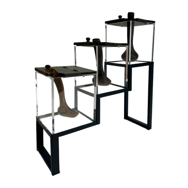 - 1× kaskádovitý podstavec z oceli v černé barvě (rozměr: 404 × 136,5 × 433 mm)